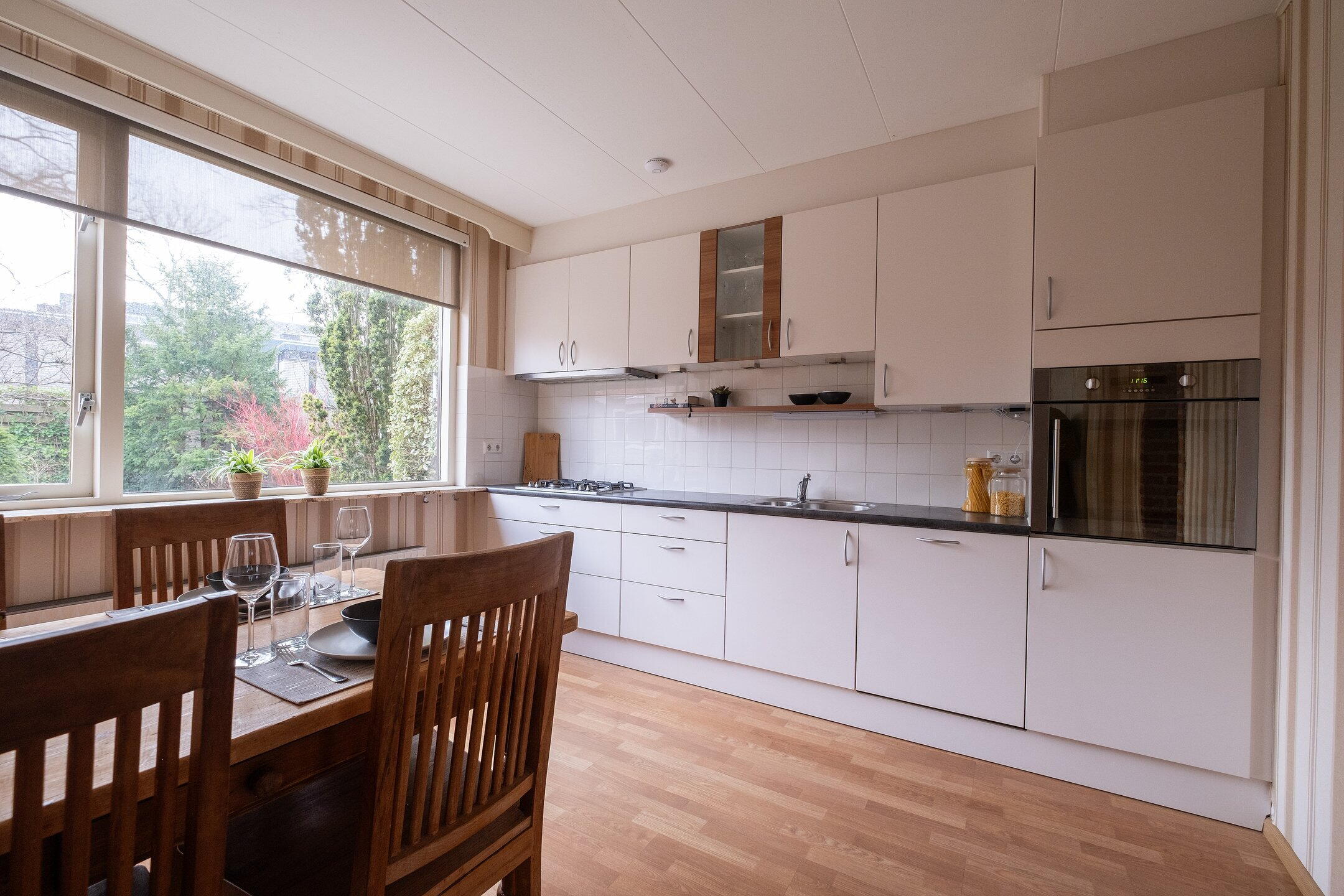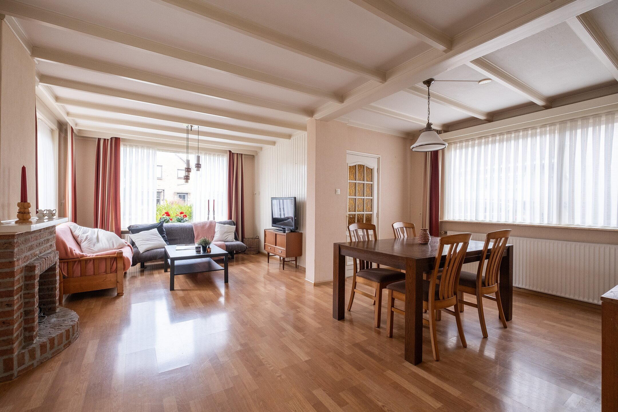 - Buitenzonwering, natuurlijke ventilatie, en TV kabel